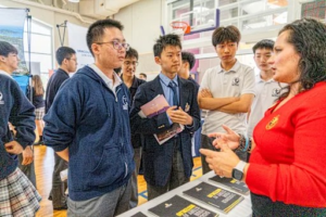 - 大学説明会の開催: 校内で定期的に大学進学フェアが開催され(右写真)、大学の担当者から直接話を聞く機会が頻繁に設けられています。