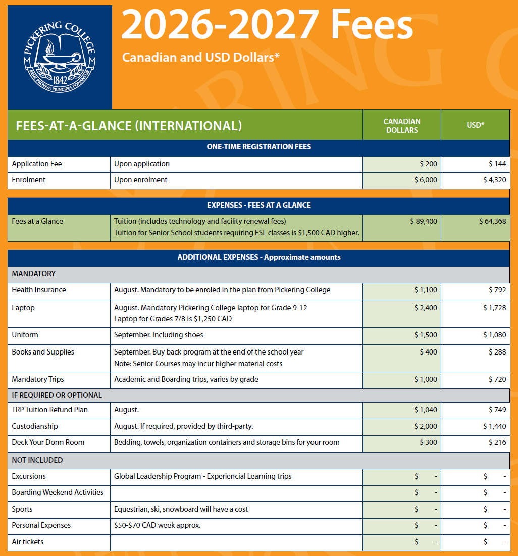 - 後見人宣誓書(ボーディング生のみ): $400